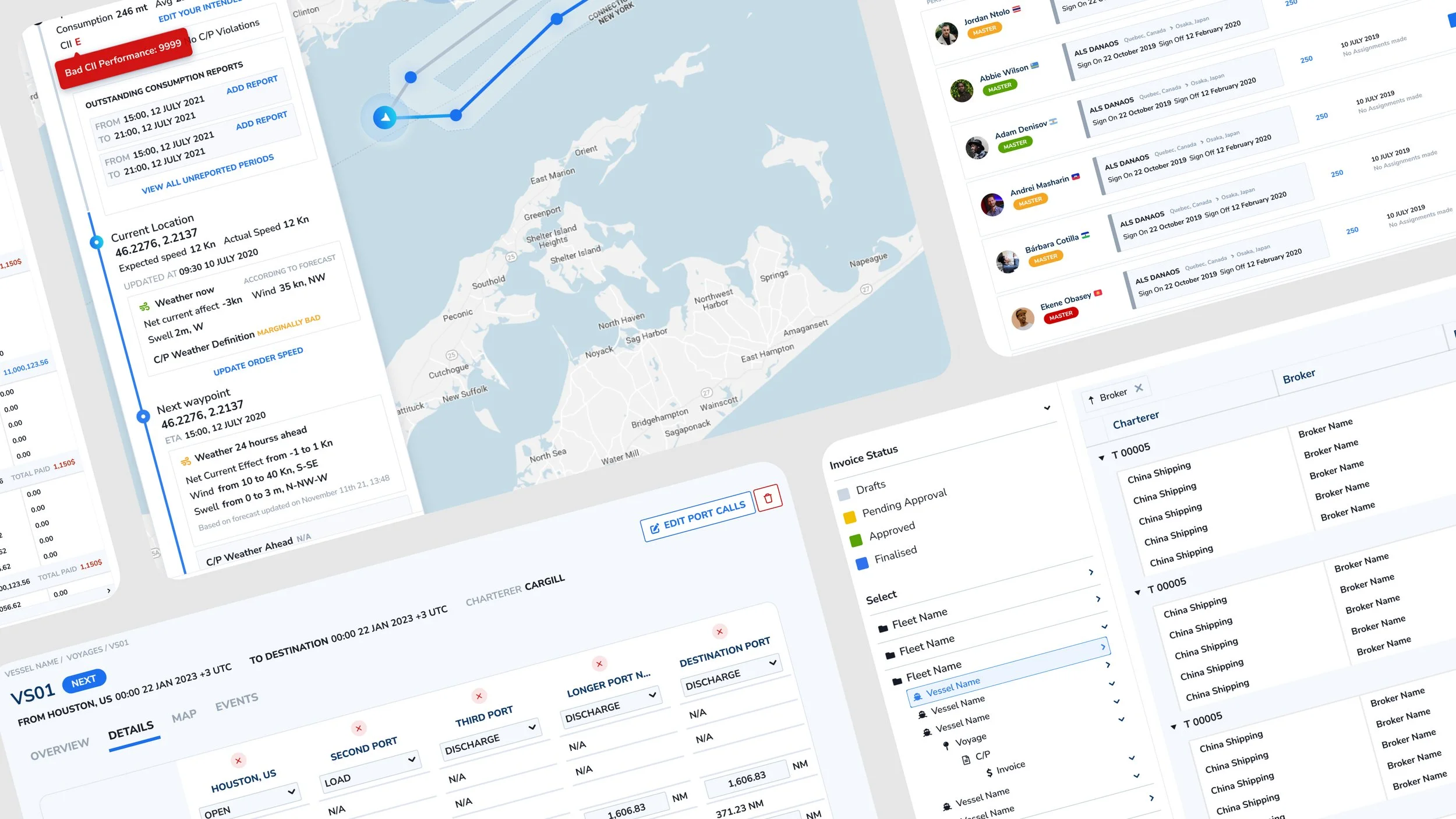 Designed a data-driven navigation interface supporting route optimization based on environmental and operational variables. The system integrates weather conditions, vessel metrics, and forecast scenarios to assist planning decisions.